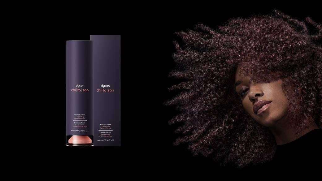 طُوِّر كريم ما قبل التصفيف ™Dyson Chitosan للترطيب الخفيف للشعر المجعّد إلى الملفوف من أجل الشعر الذي يتميّز بتجاعيد حلزونية وتجعيدات صغيرة أو لولبية أكثر إحكاماً أو تجعيدات على شكل حرف S أو أنماط على شكل حرف Z ذات لفائف متقاربة. يتميّز بتركيبة أخف من المكونات المُرطِّبة، تشتمل على زيوت بذور العنب والأرغان، تعد الأنسب للخصلات الأرفع التي يثقل وزنها بسهولة بسبب المستحضر.